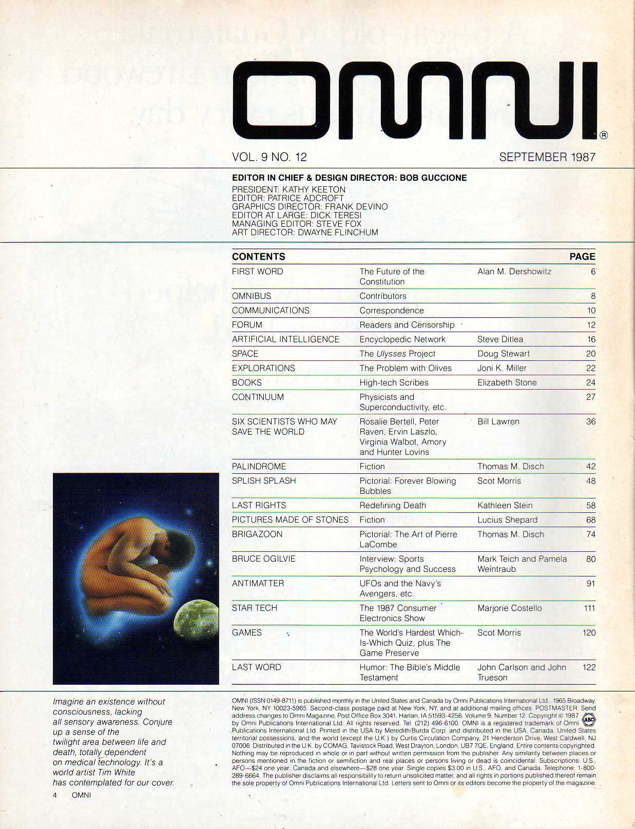 Thomas Disch Palindrome. Lucius Shepard Pictures Made of Stones. Scot Morris Which is Which Quiz. Index by Author Index by Topics Omni Cartoons Memorable Omni Ads Main Index