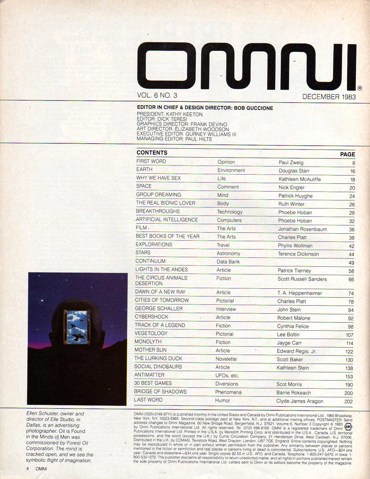 Dec 1983 Scott Russell Sanders. Dec 1983 Cynthia Felice. Dec 1983 Jayge Carr. Dec 1983 Scott Baker. Author Index Page Index Page