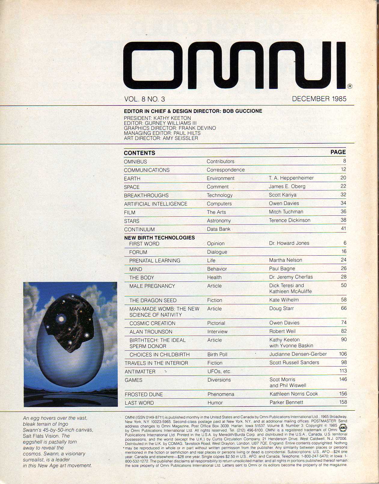 Kate Wilheim The Dragon Seed. Scot Russell Sanders Travels In The Interior. Index by Author Index by Topics Omni Cartoons Memorable Omni Ads Main Index